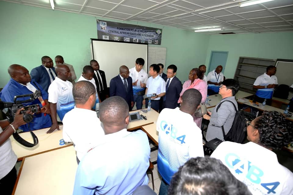 Le Ministre de la communication et de l'économie numérique, Rigobert IKAMBOUAYAT NDEKA en visite à l'incubateur numérique (SING).